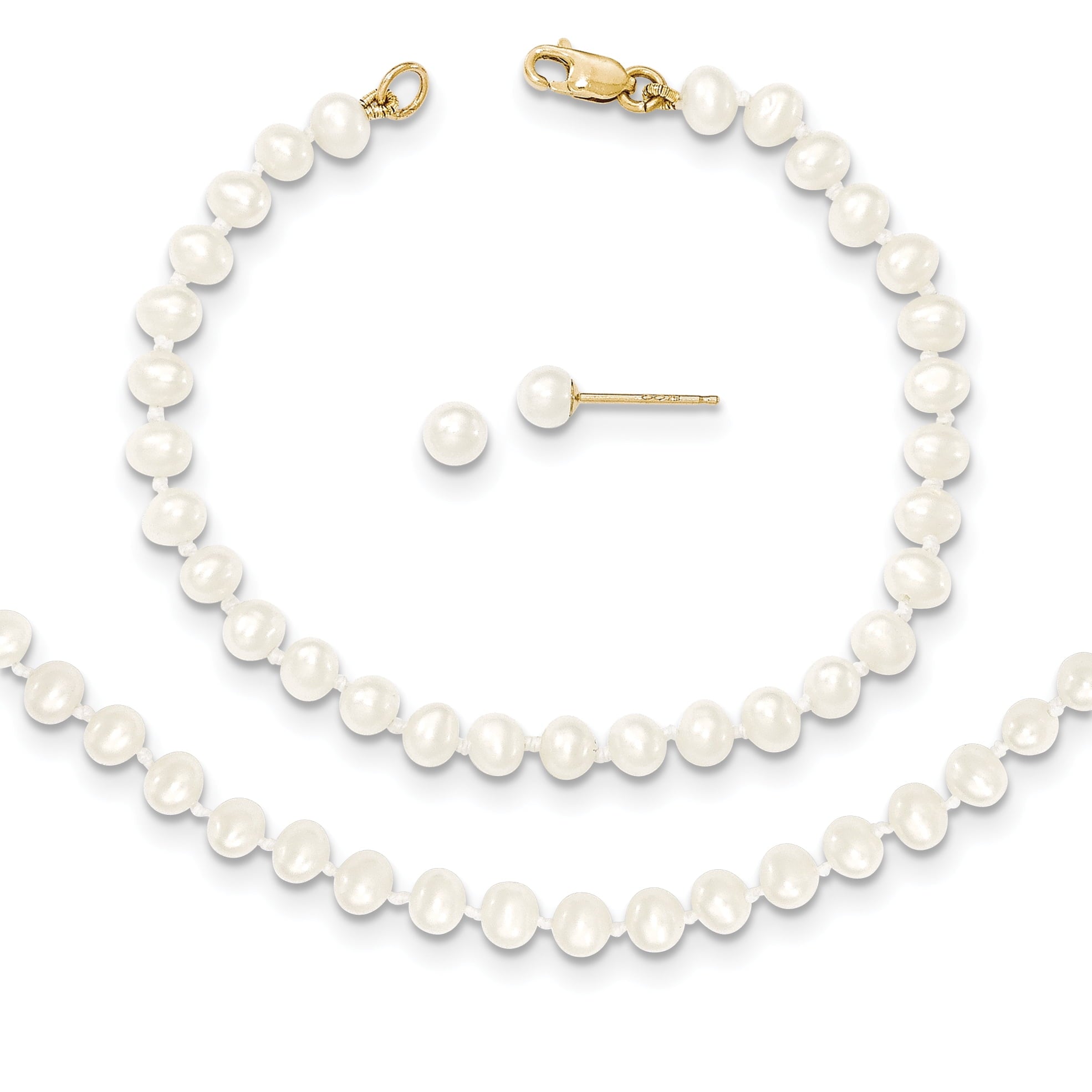 14K 3-4Mm Fw Cultured Pearl 14In Necklace, 5In. Bracelet & Earring Set