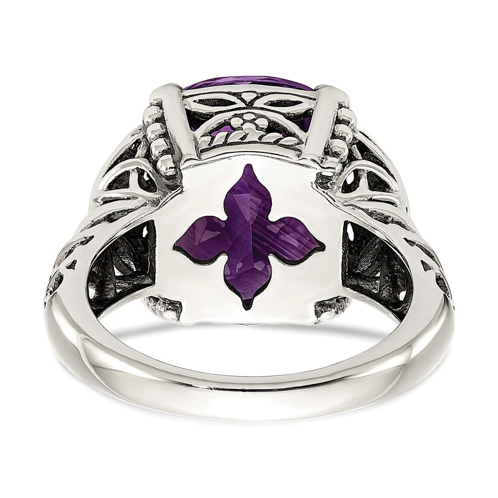 Shey Couture Sterling Silver With 14K Accent Antiqued Cushion Amethyst Ring