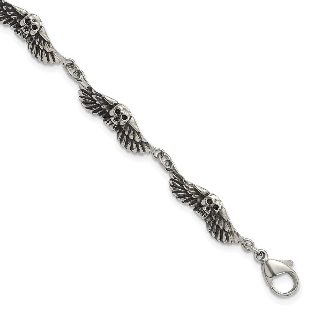Stainless Steel Antiqued Skulls With Wings Bracelet
