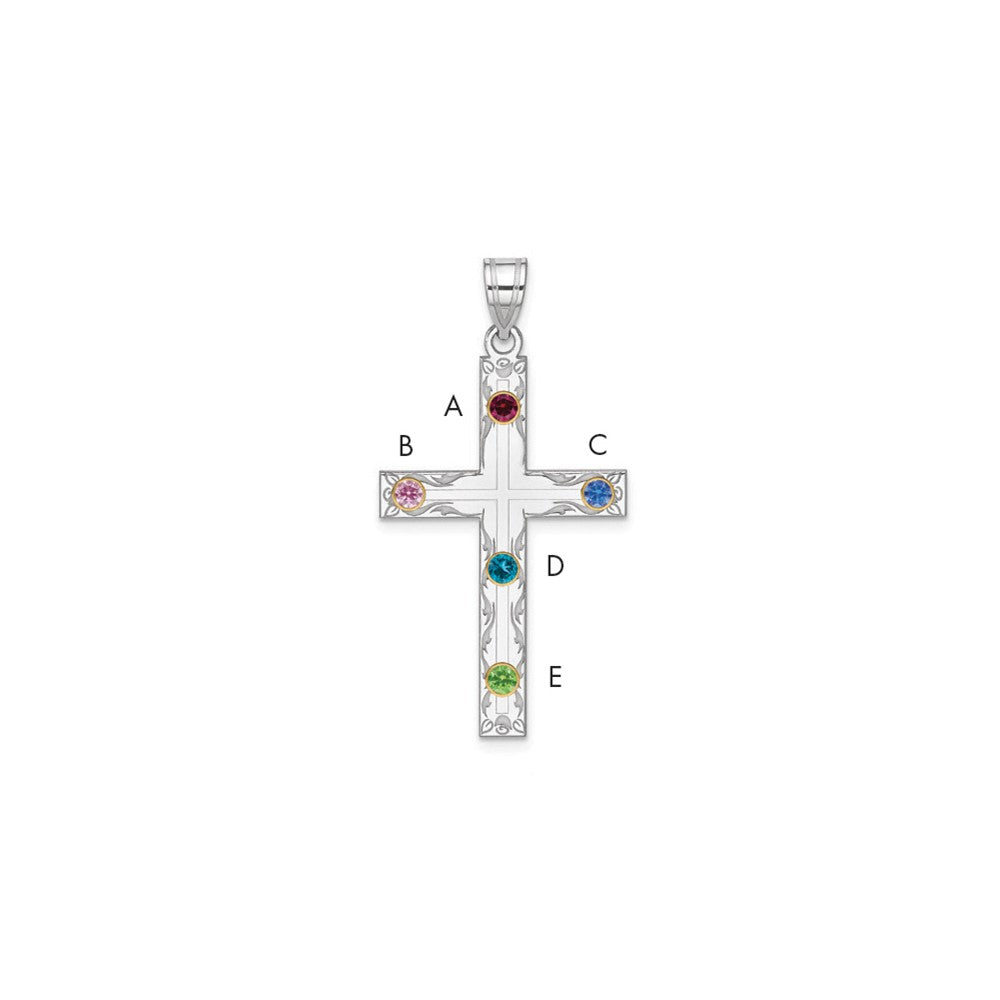 Sterling Silver Rh-Plt/14K Bezel Crystal Family Cross Pendant