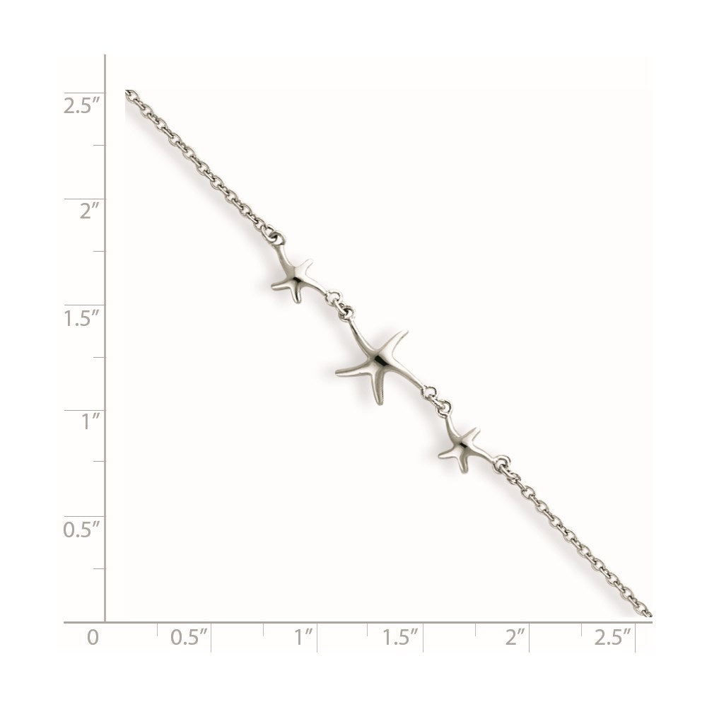 Sterling Silver Rhodium-Plated 10In W/1In Ext Three Stars Anklet