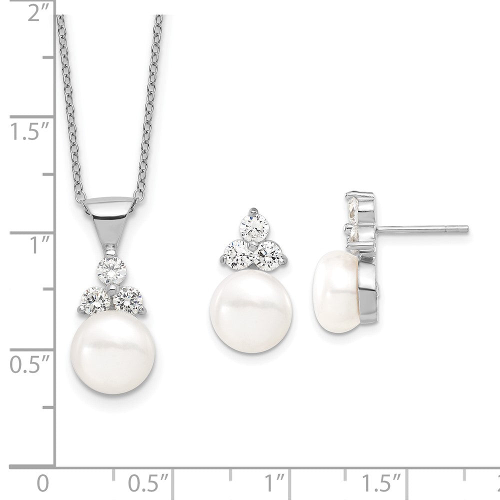 Sterling Silver Rhodium-Plated 9-10Mm Coin Fwcpearl Cz Earring/Necklace Set