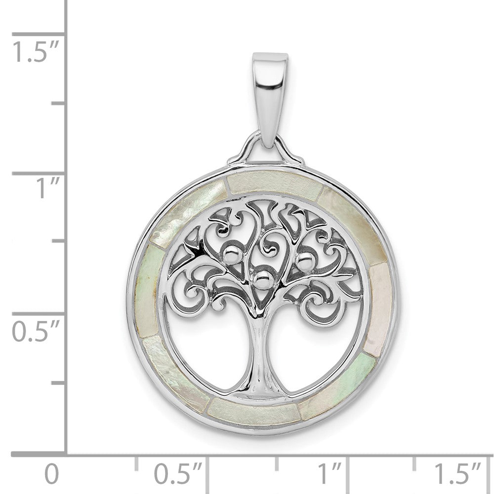 Sterling Silver Rhodium-Plated White Mop Tree Of Life Pendant