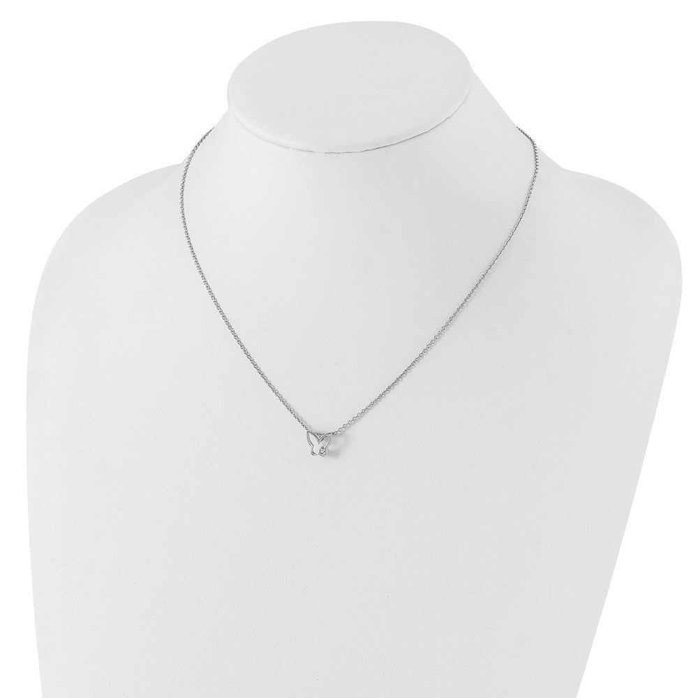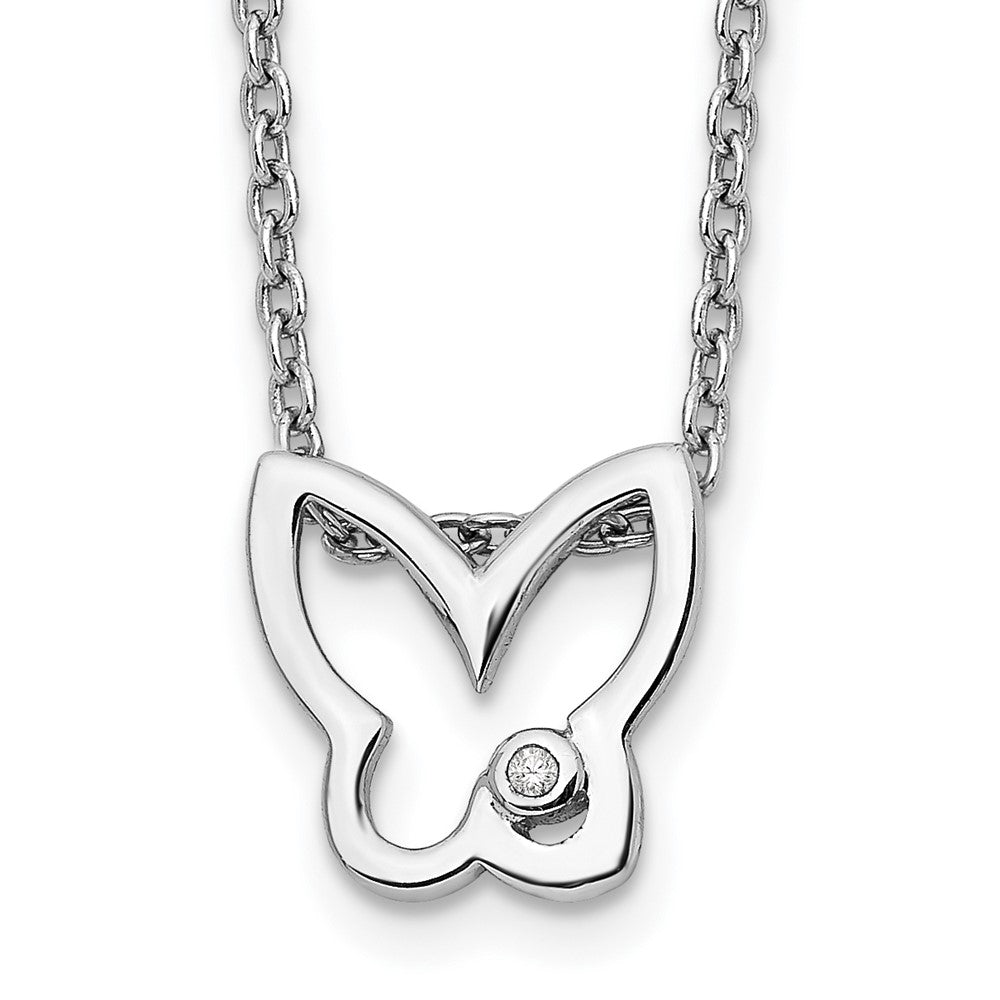 White Ice Sterling Silver Rhodium-Plated 18 Inch Diamond Butterfly Necklace With 2 Inch Extender