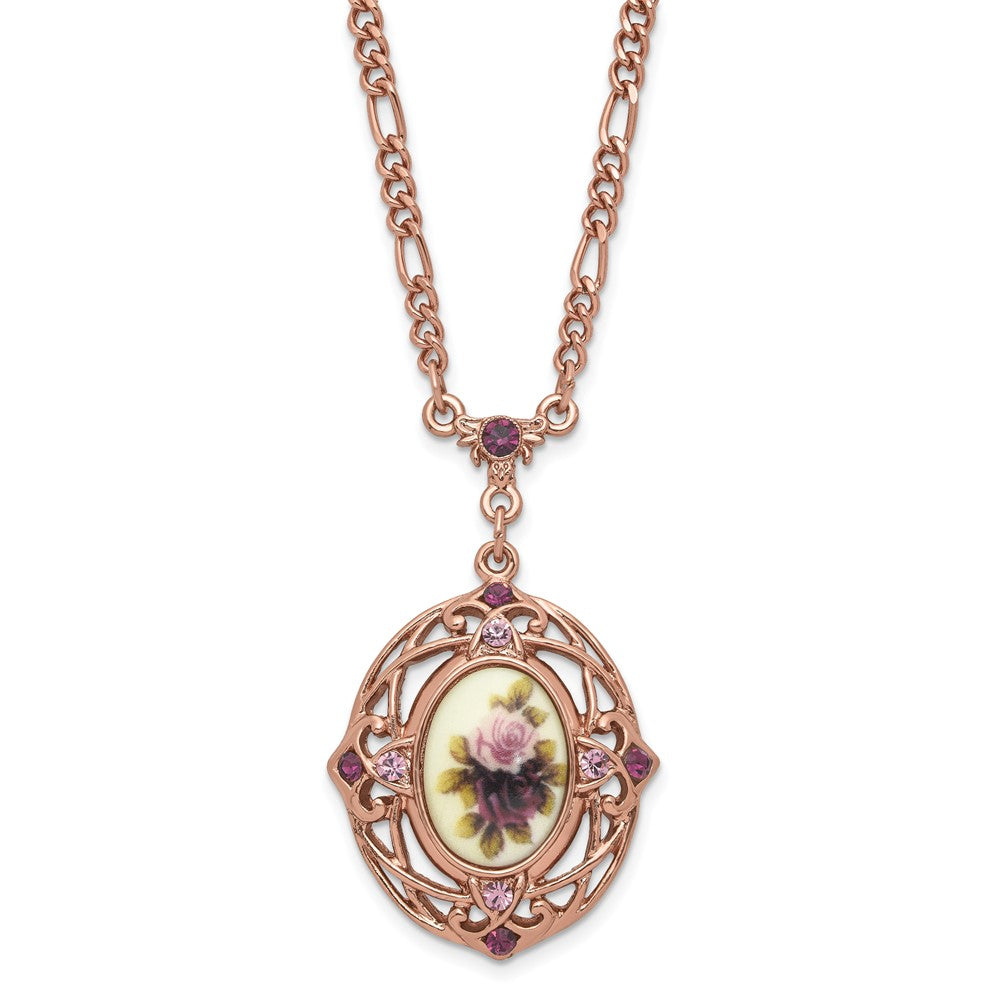 1928 Rose-Tone Light And Dark Purple Crystal And Floral 28 Inch Necklace