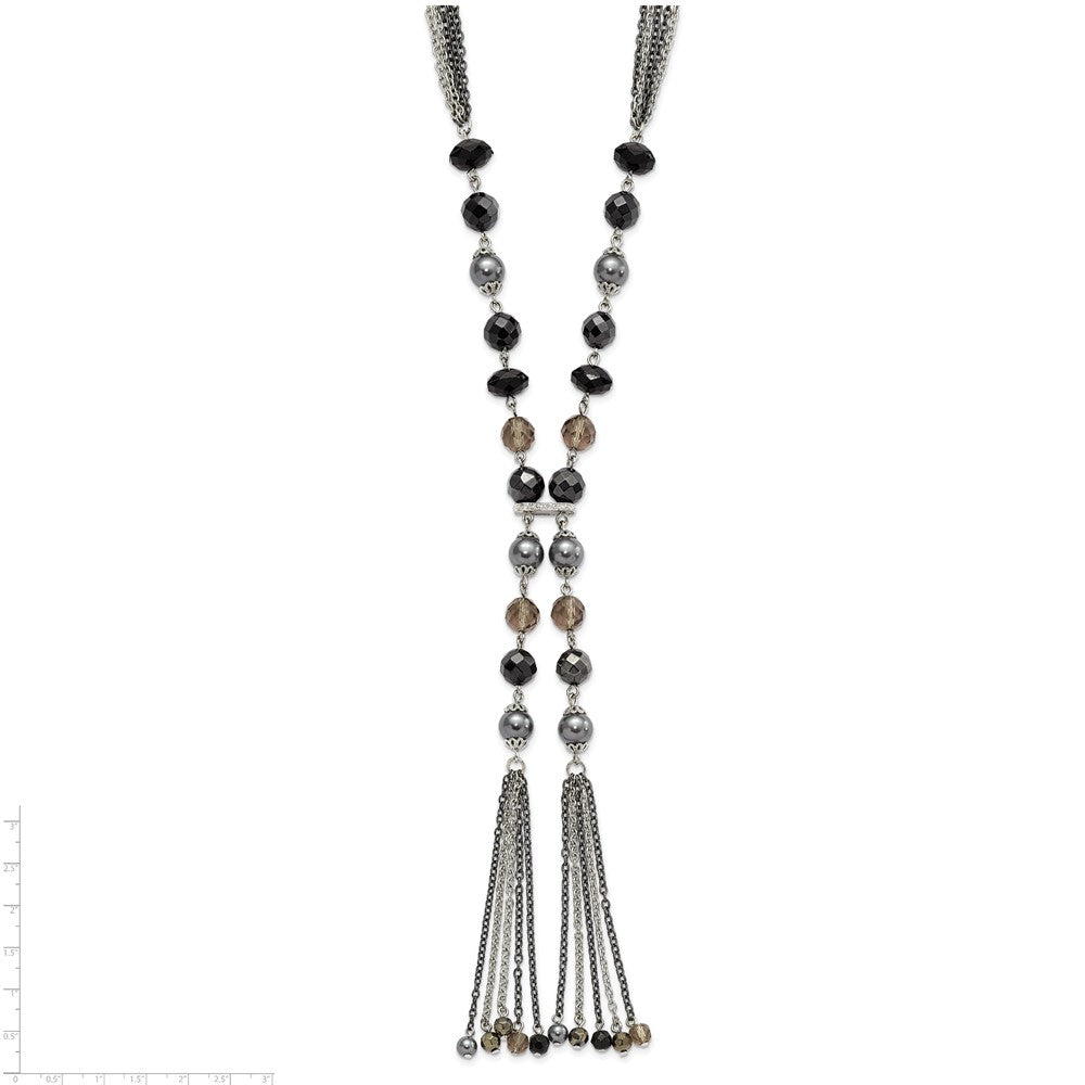 1928 Silver-Tone Black & Hematite Acrylic Stones & Beads 28In Necklace