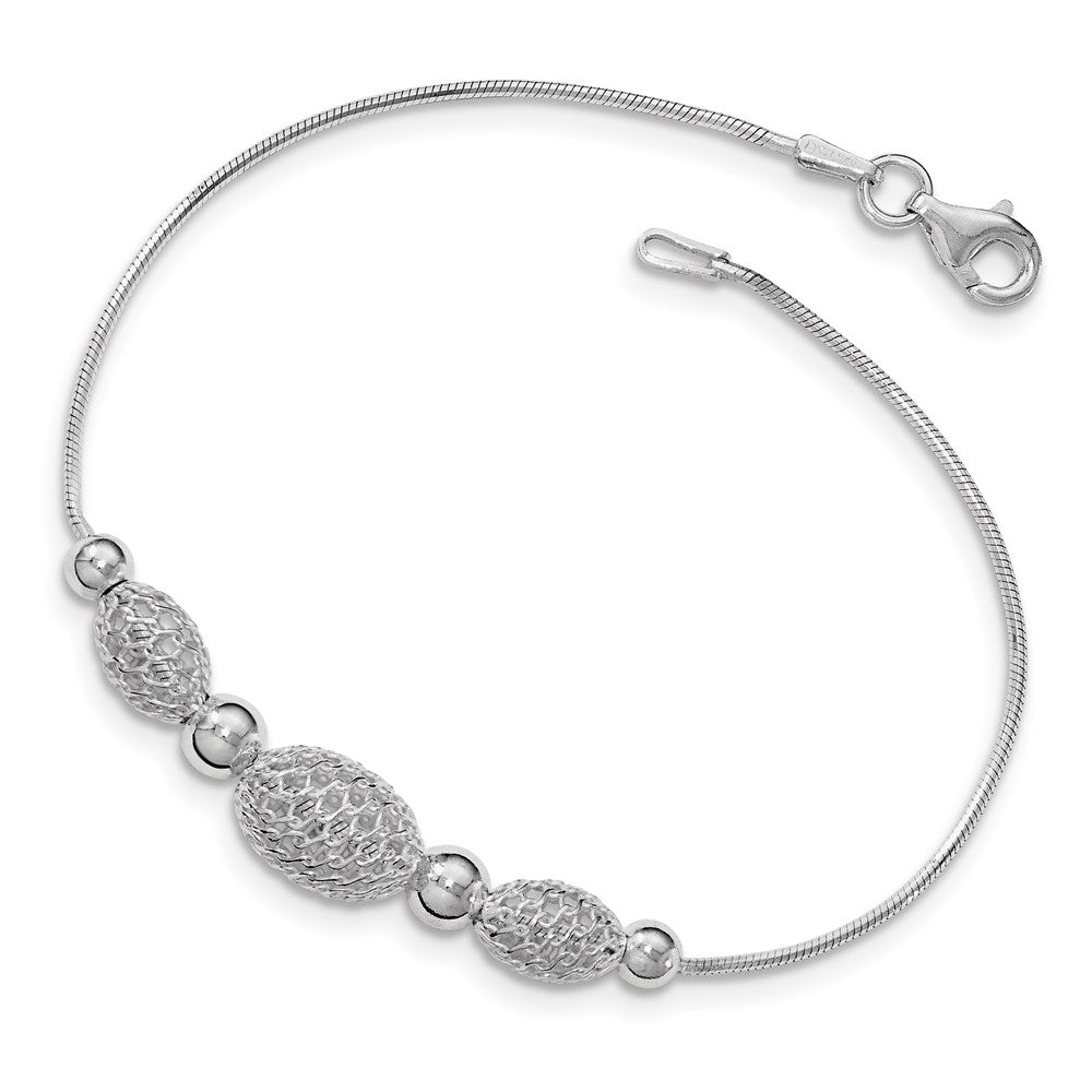 Sterling Silver Snake Chain W/Large Filigree Beads Bracelet