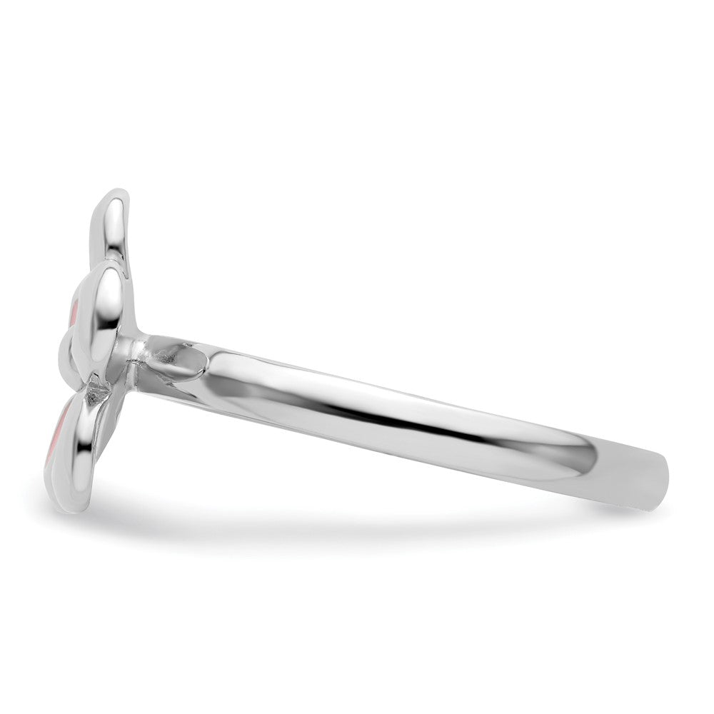 Sterling Silver Stackable Expressions Polished Pink Enameled Flower Ring