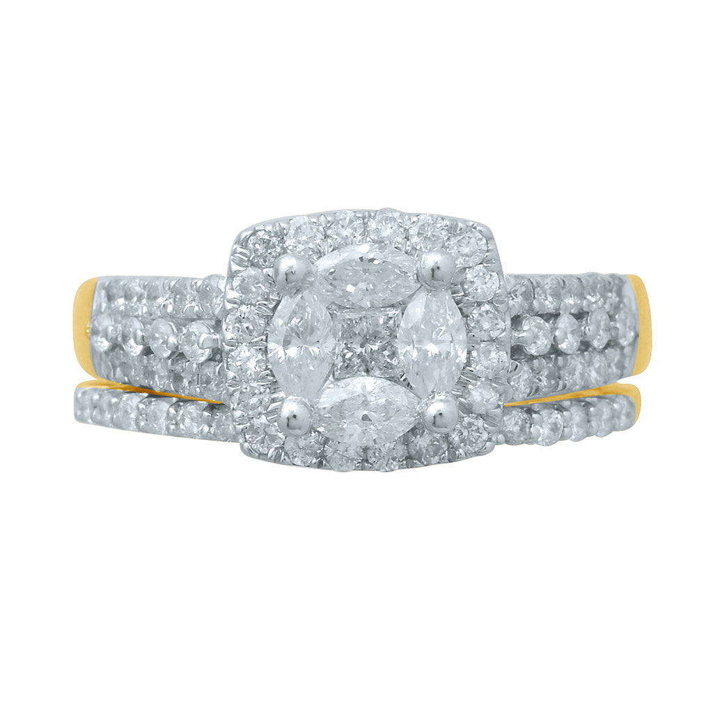 14K Yellow Yellow Gold Bridal Set With 1.21-1.27Ct Round And Princess Cut Diamonds