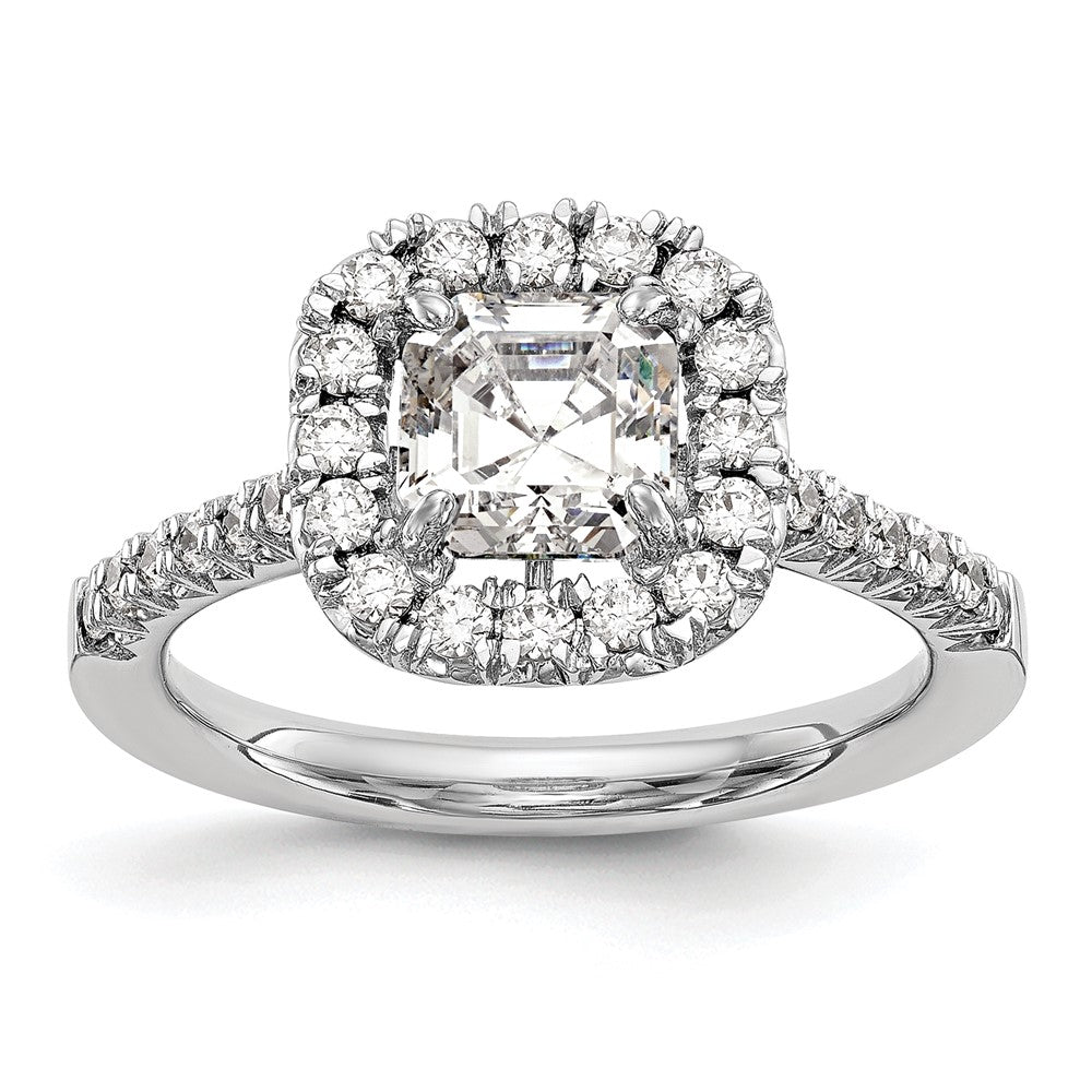 14k White Gold 3/4 carat Lab Grown Diamond VS/SI+ G+ Complete Round Double Halo Engagement Ring