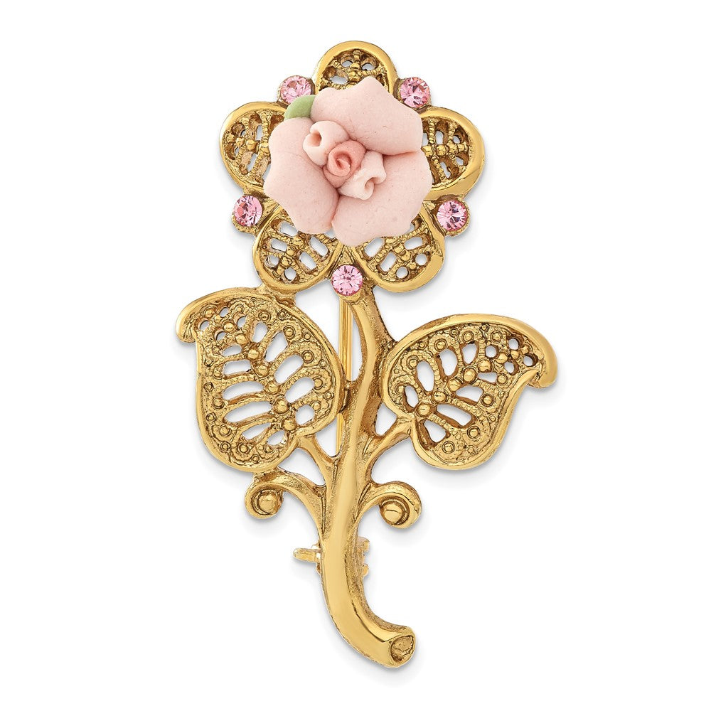 Sterling Silver Rhodium-Plated Pink Cz Flamingo Pin Brooch