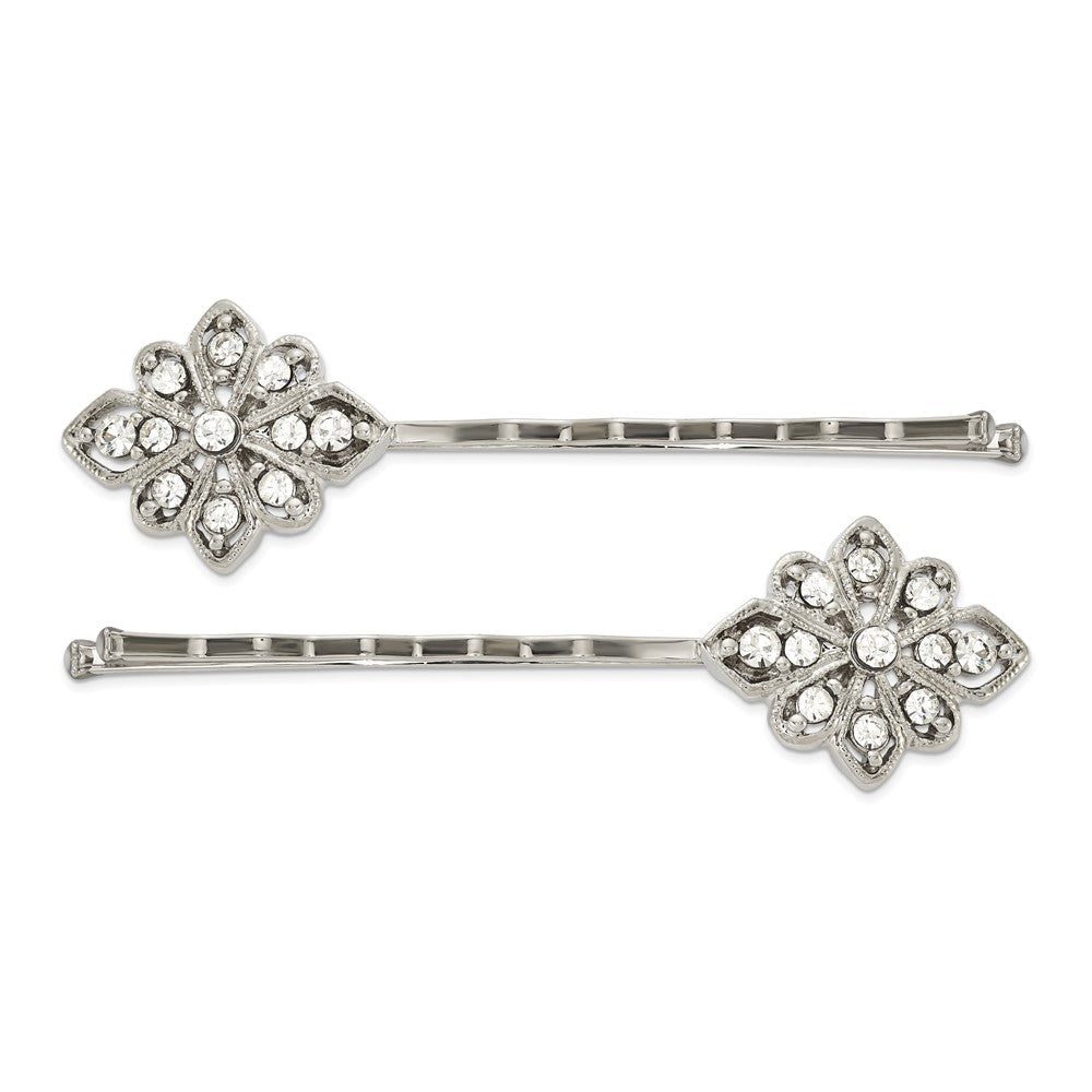 1928 Jewelry Set Of 2 Silver-Tone Clear Crystal Flower Hairpins