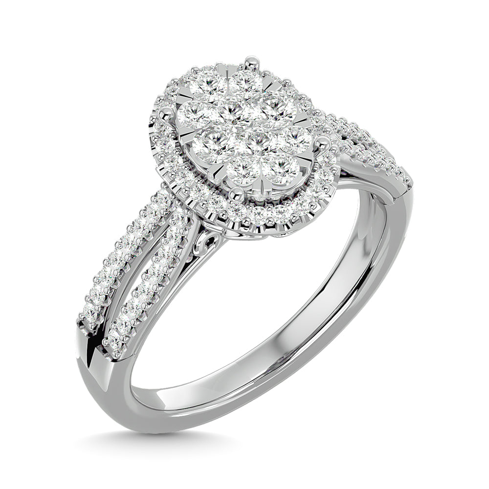 Diamond 3/4 Ct Tw Round Cut Oval Shape Engagement Ring In 14K White Gold