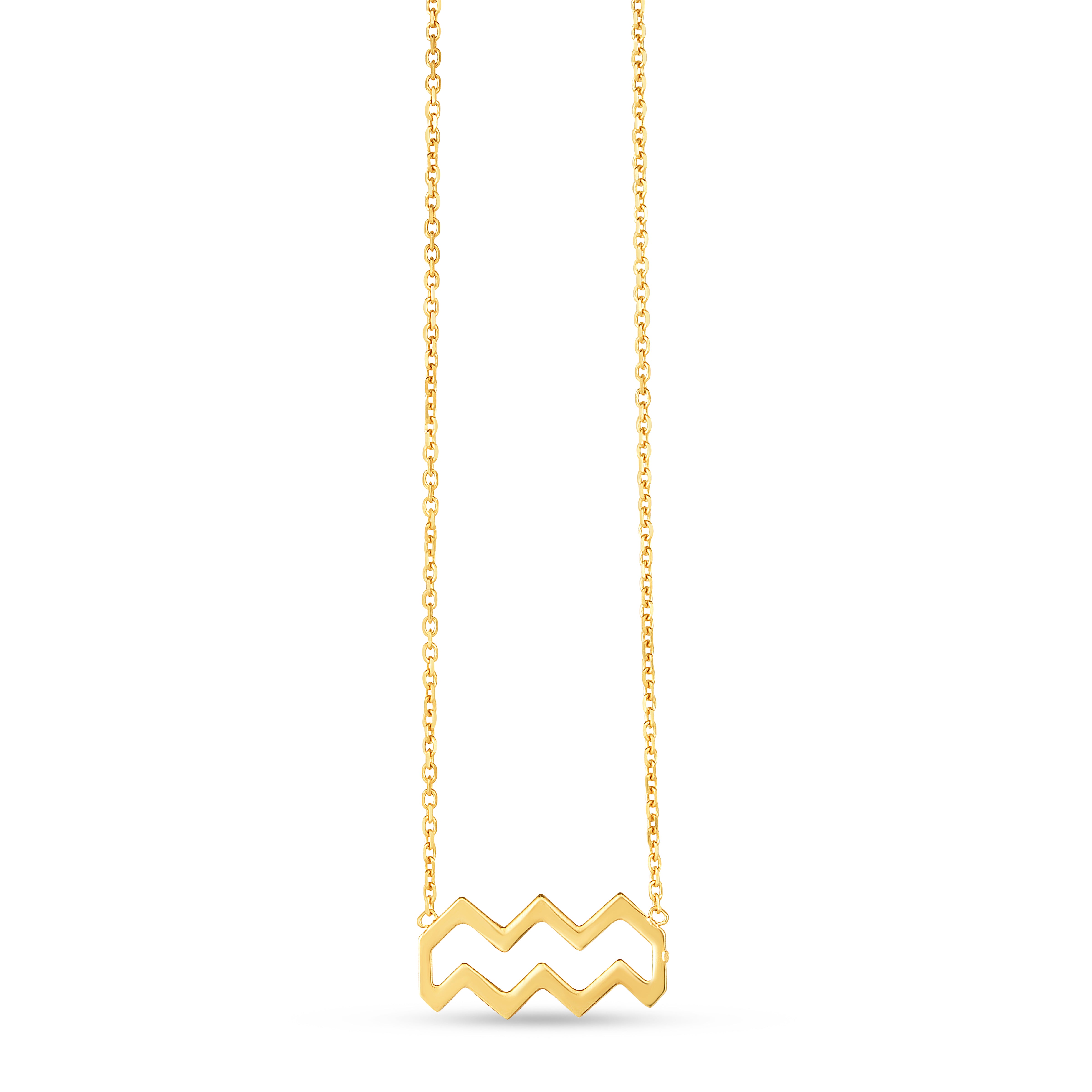 14K Satin Diamond-Cut Aquarius Zodiac Charm