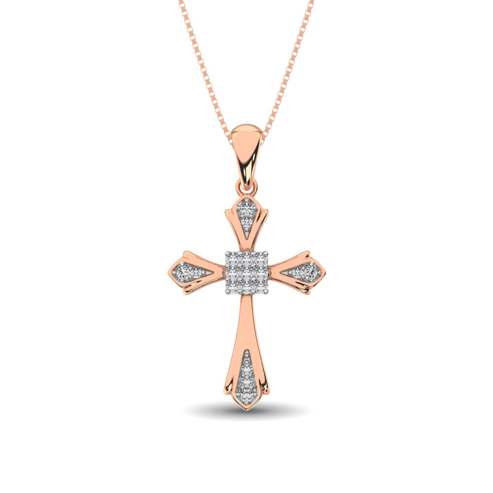 14K Rose Gold 1/6 Ct.Tw. Diamond Cross Pendant