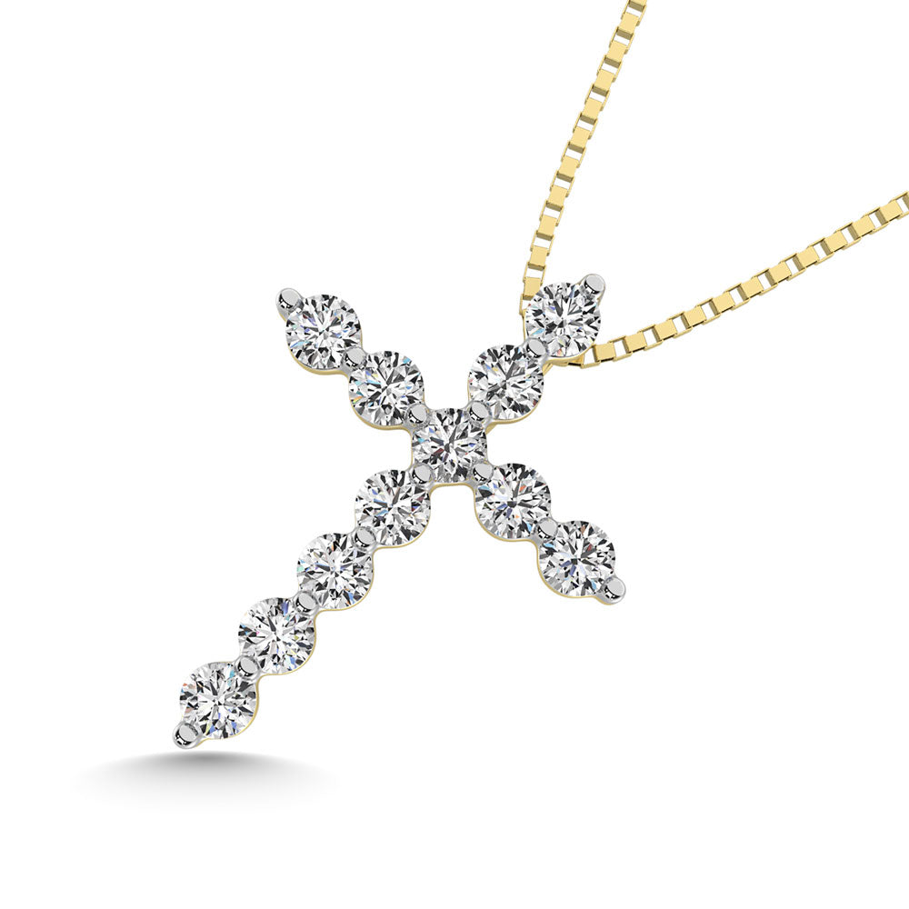 14K Yellow Gold 1/5 Ct.Tw.Diamond Cross Pendant
