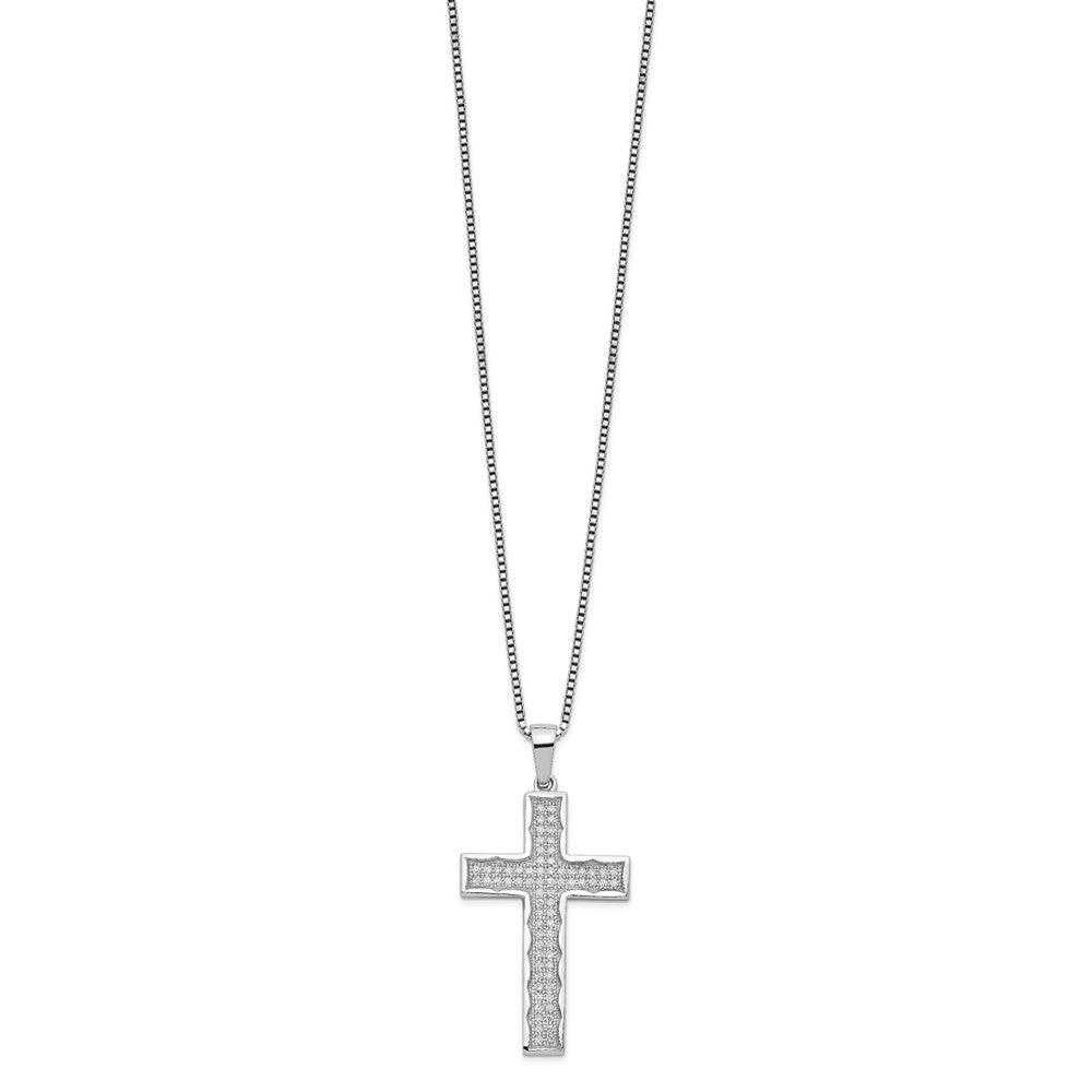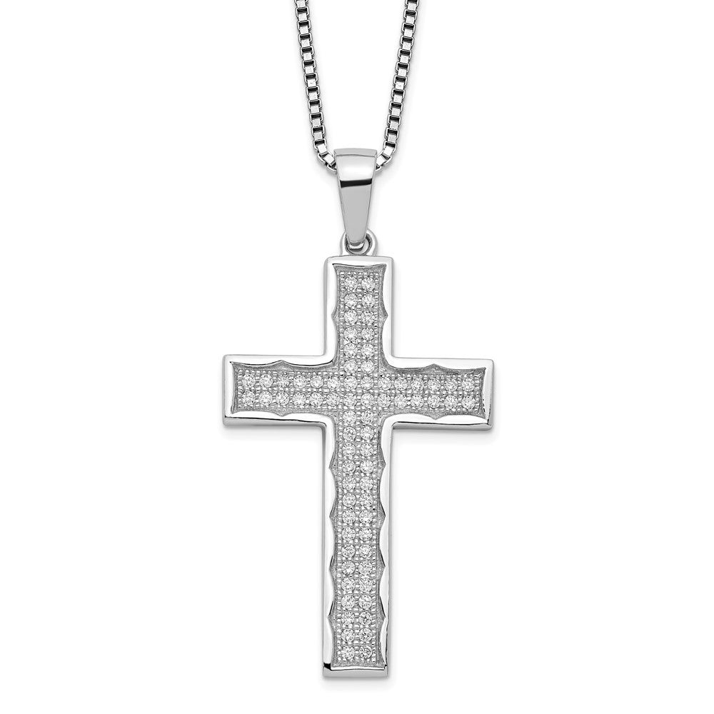 Brilliant Embers Sterling Silver Rhodium-Plated 18 Stone 18 Inch Micro Pavç Cz Cross Necklace With 2 Inch Extender