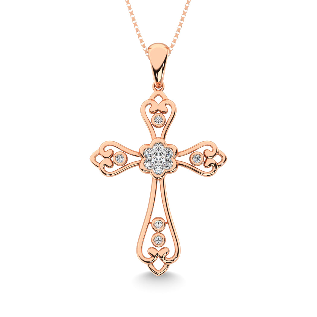 Diamond Accented Lacy Cross Pendant 1/6 Ct.Tw