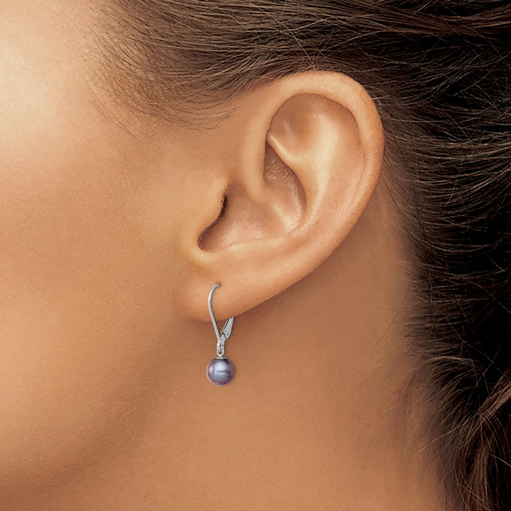 Sterling Silver Rhodium-Plated Polished 6-7Mm Black Freshwater Cultured Pearl Leverback Dangle Earrings