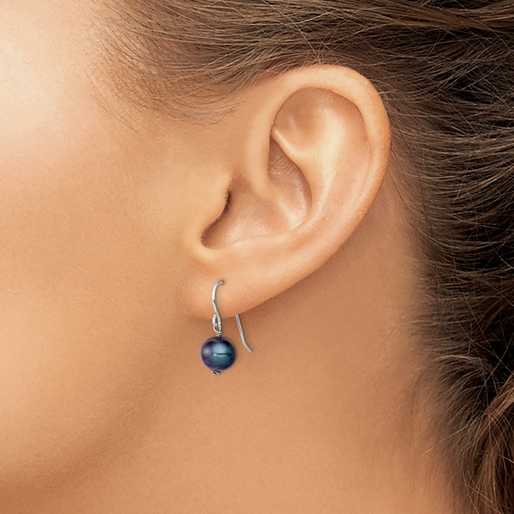 Sterling Silver Rhodium-Plated Polished Black 7.5-8.5Mm Freshwater Cultured Pearl Dangle Earrings