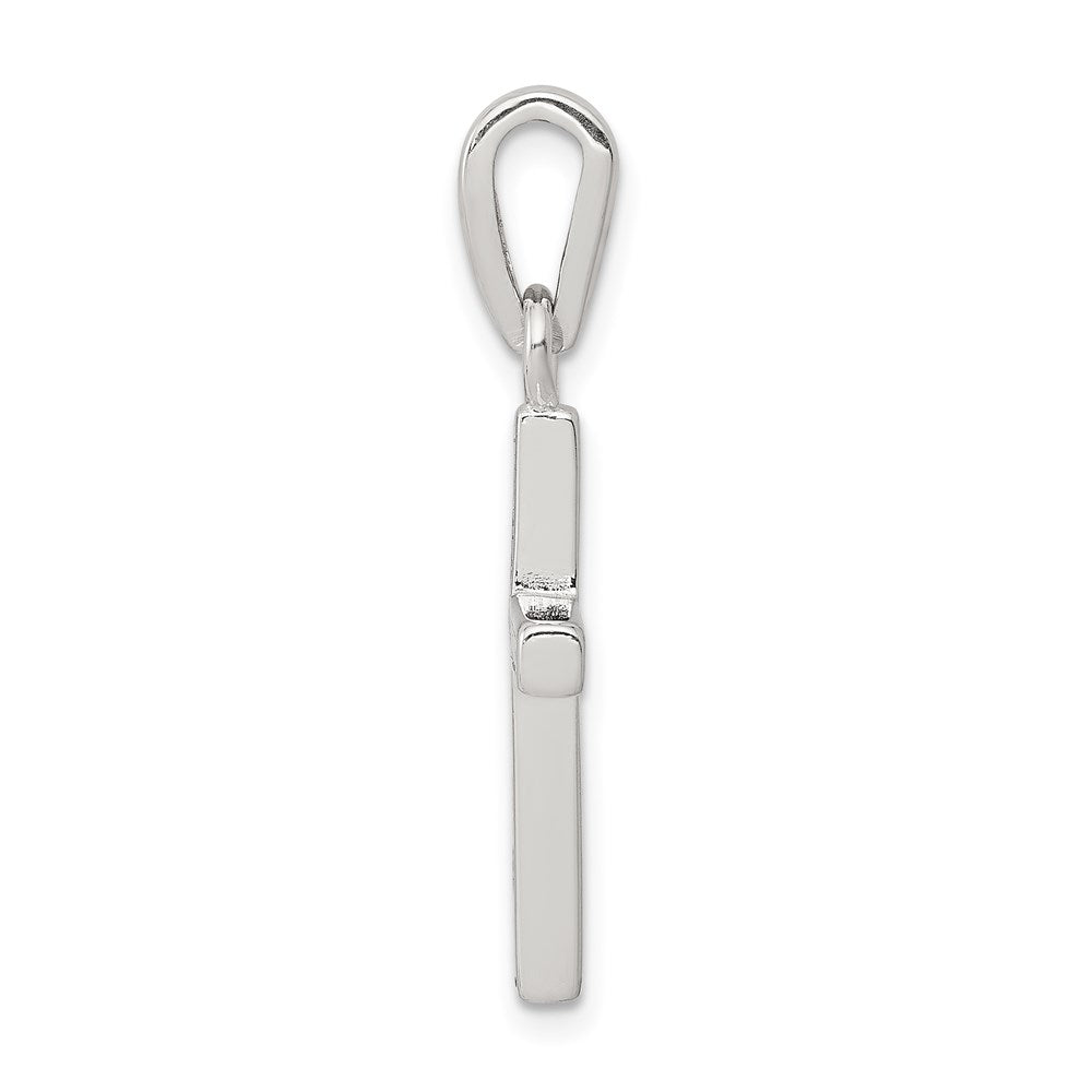 Sterling Silver Rhodium-Plated White Lab Created Opal Cross Pendant