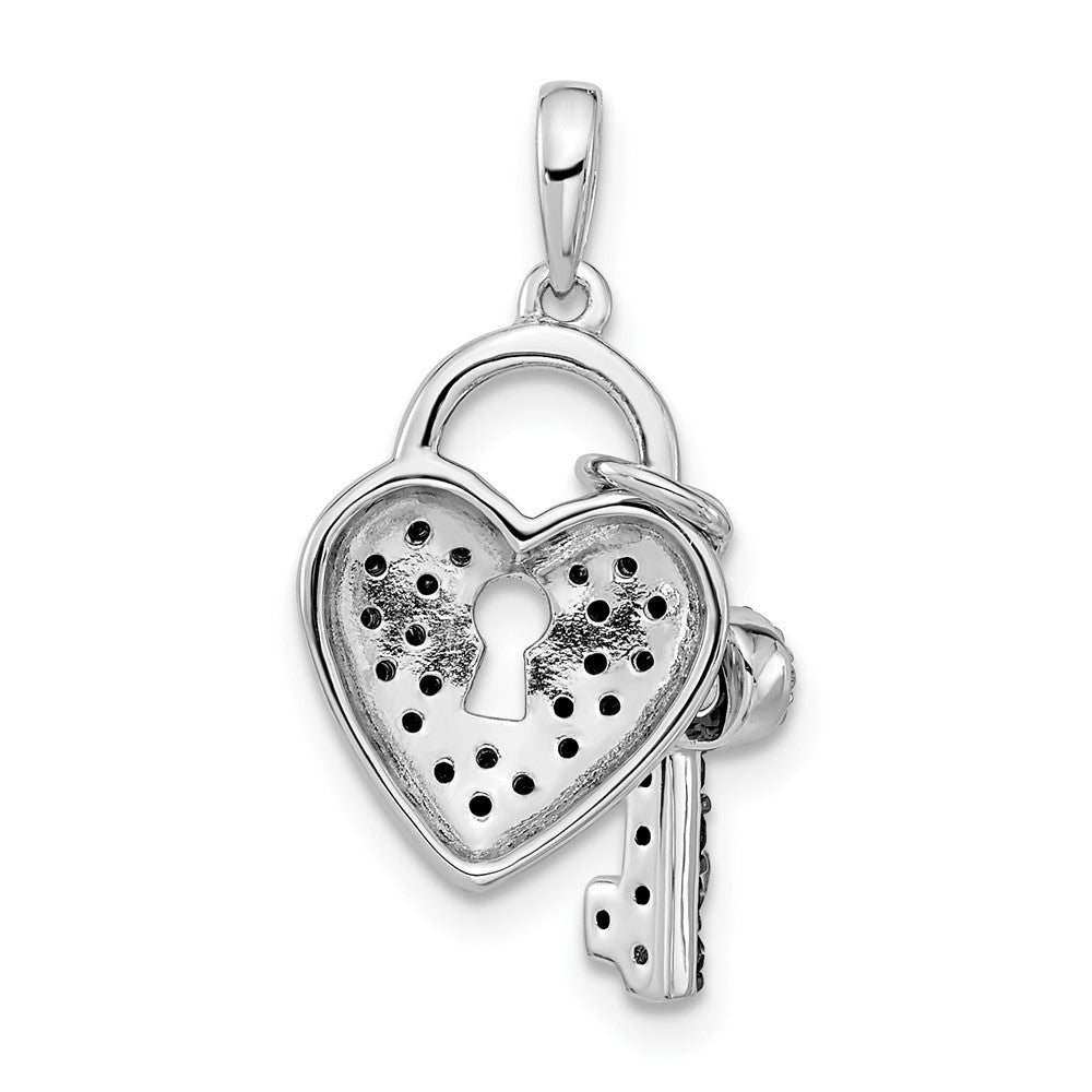 White Night Sterling Silver Rhodium-Plated Black And White Diamond Heart And Key 18 Inch Necklace With 2 Inch Extender