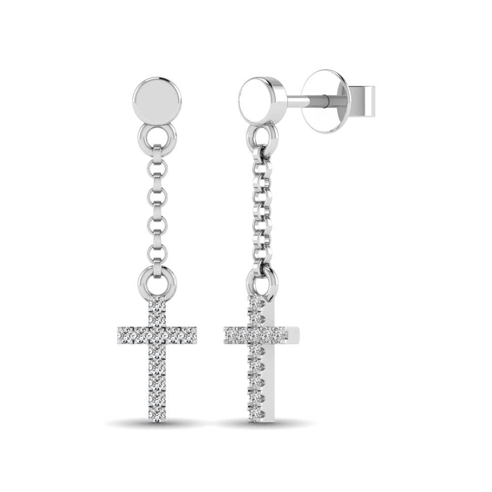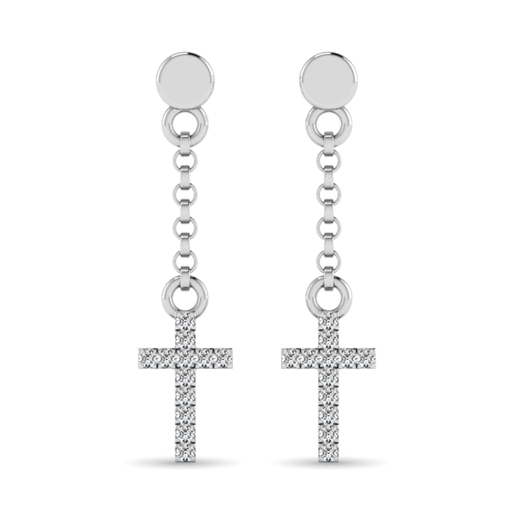 10K White Gold 1/20 Ct.Tw.Diamond Cross Earrings