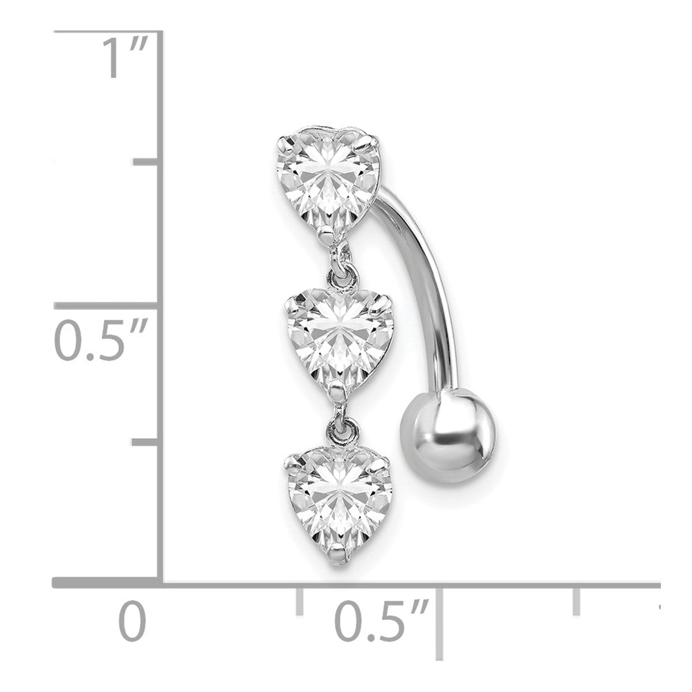 10K White Gold 5Mm Cz Heart Belly Dangle