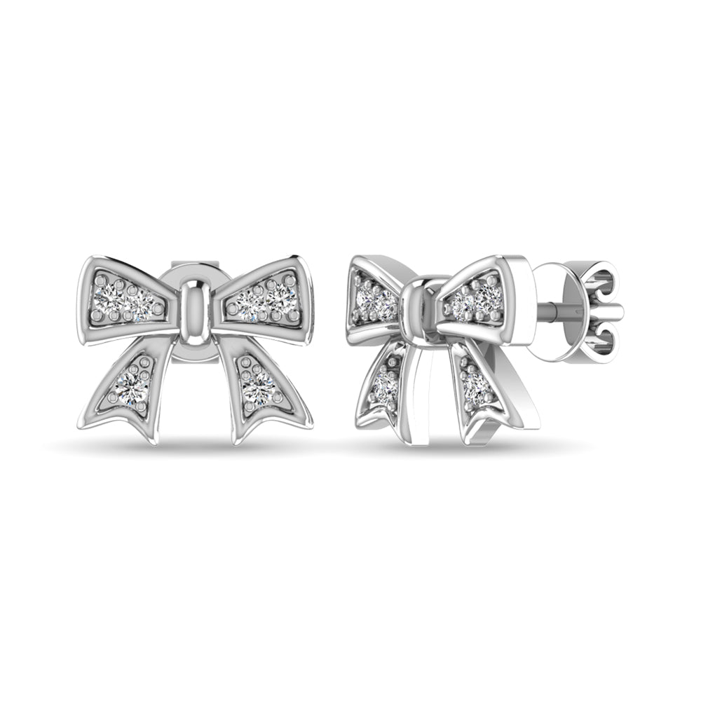 10K White Gold Diamond Accent Bow Earrings