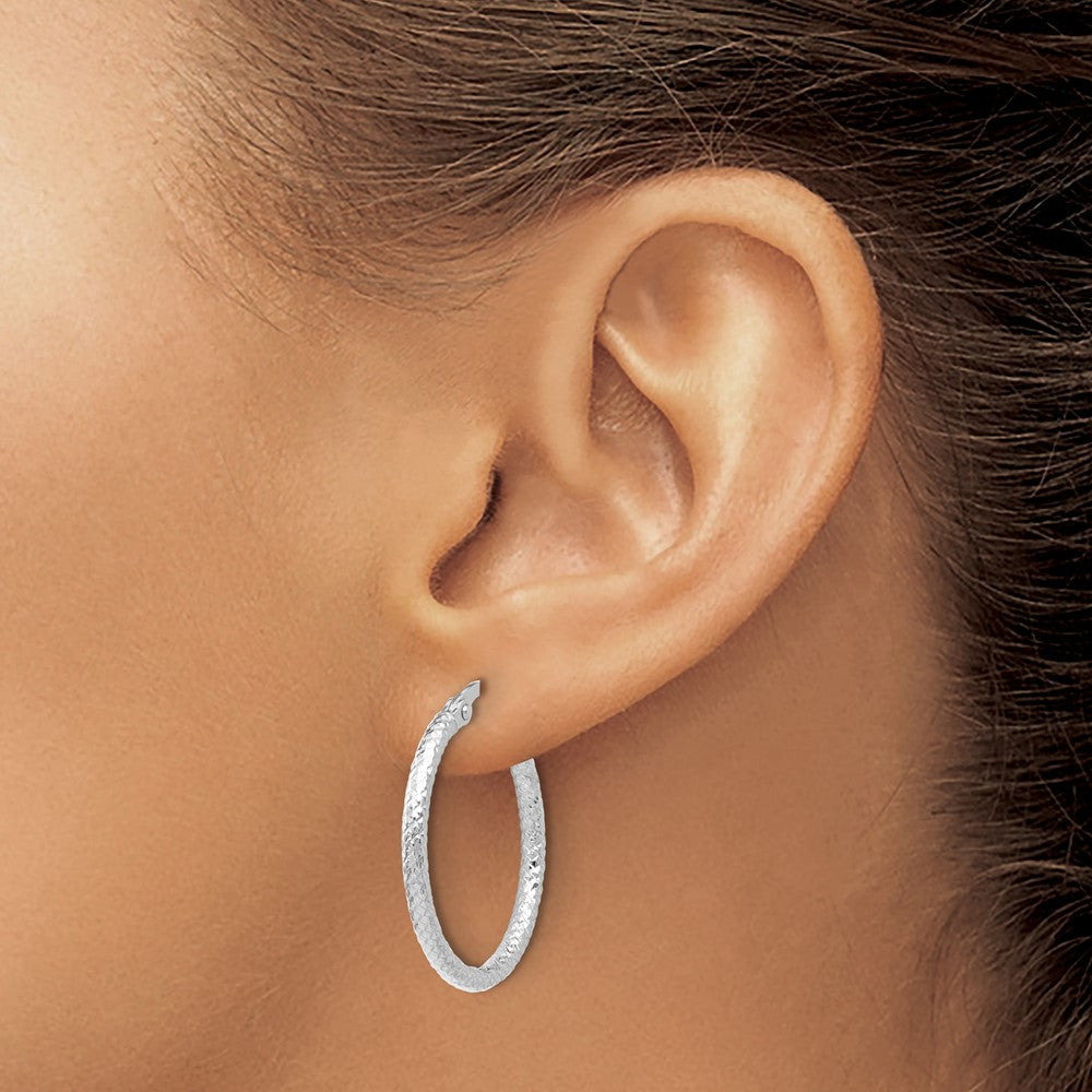 10K White Gold Polished And Textured Hinged Hoop Earrings