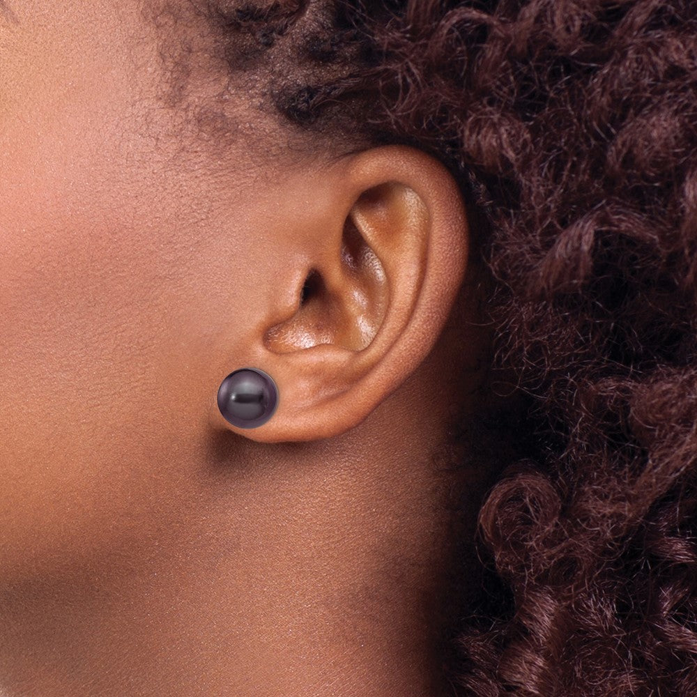 14K White Gold 10-11Mm Black Round Fw Cultured Pearl Stud Post Earrings