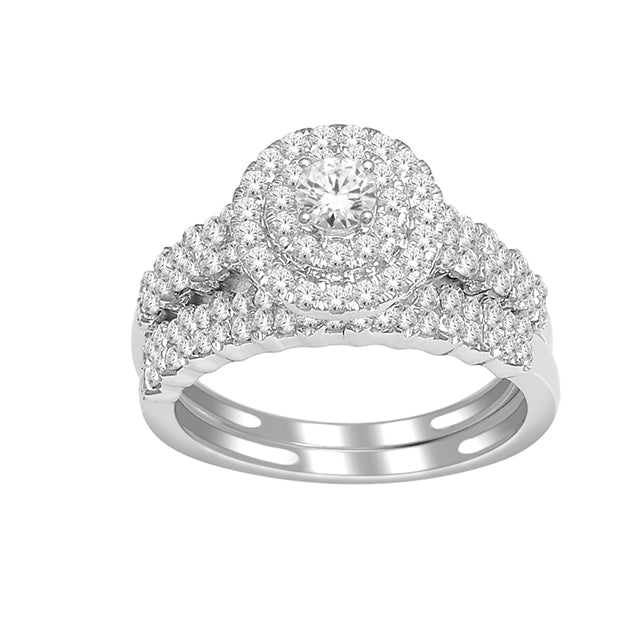 14K White White Gold Bridal Set With 1.00 Ct Round Diamonds