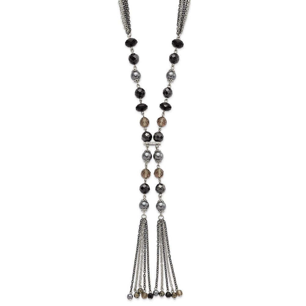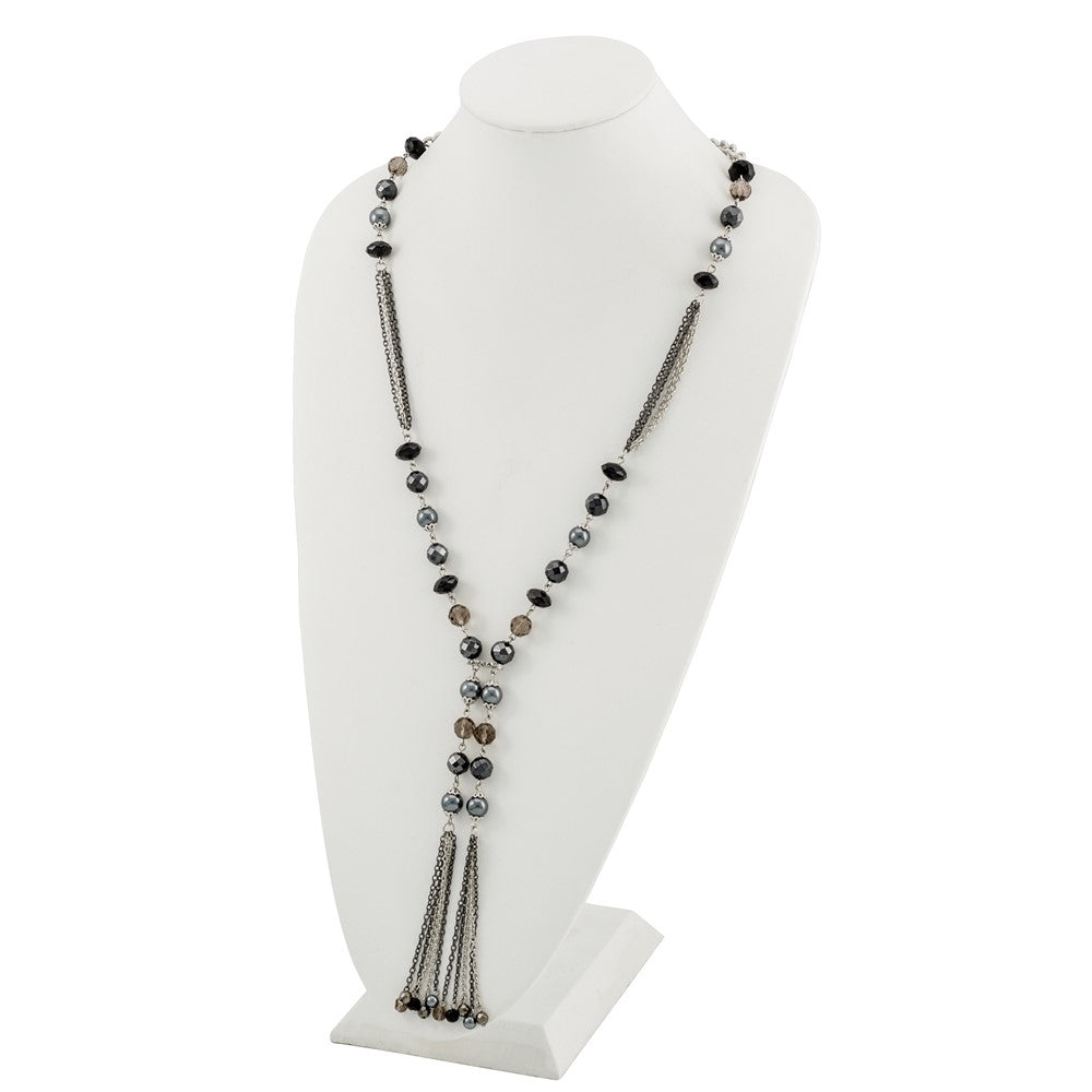 1928 Silver-Tone Black & Hematite Acrylic Stones & Beads 28In Necklace
