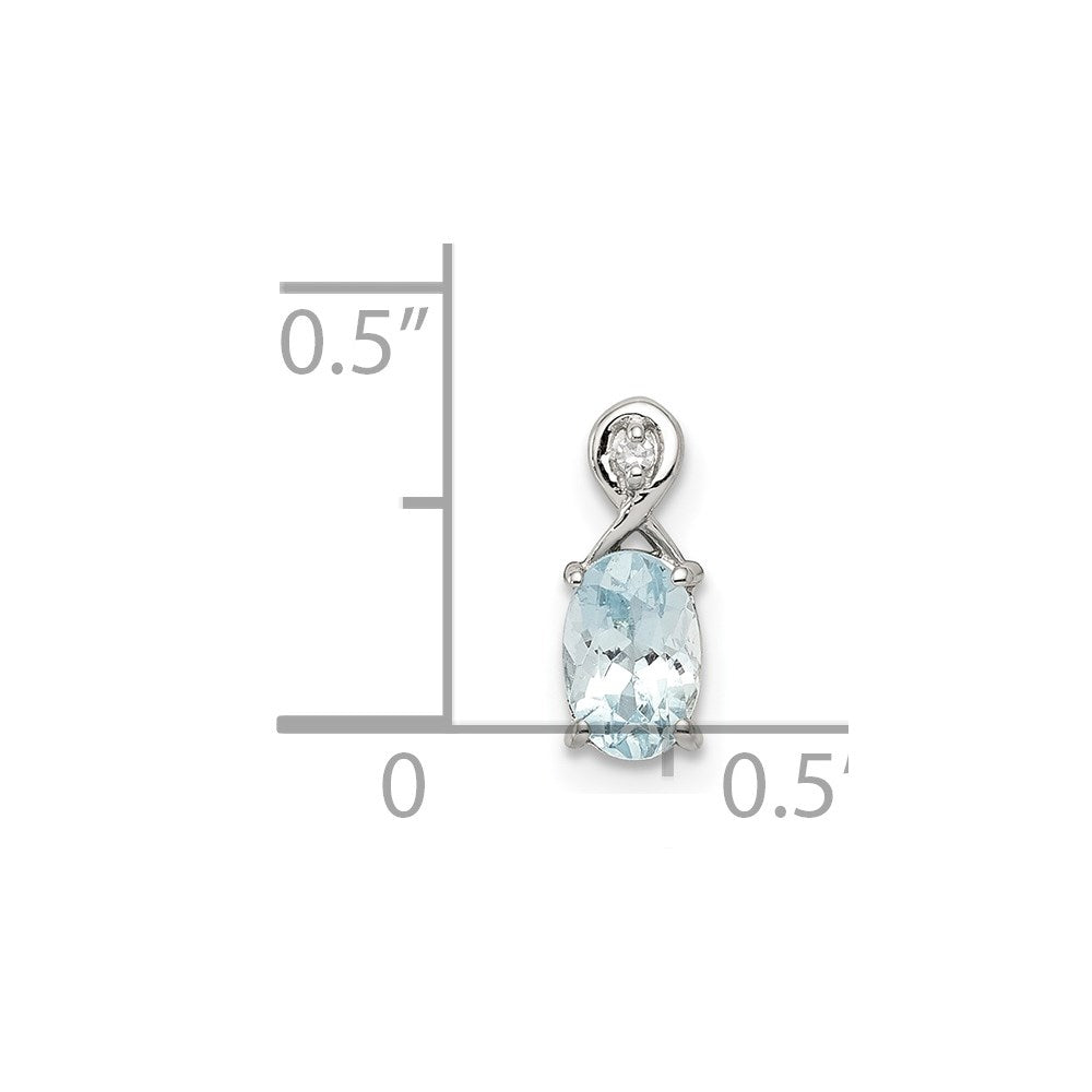 Sterling Silver Rhodium Plated Dia. & Aquamarine Oval Pendant