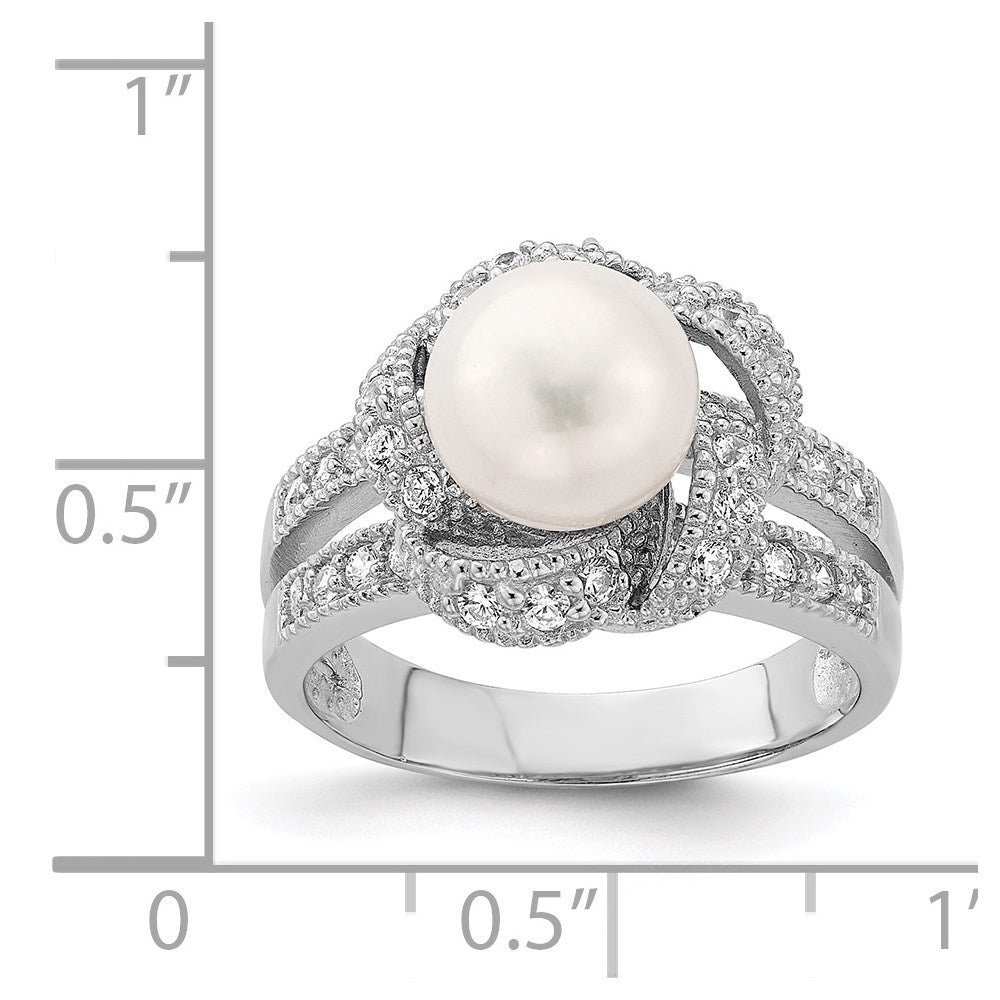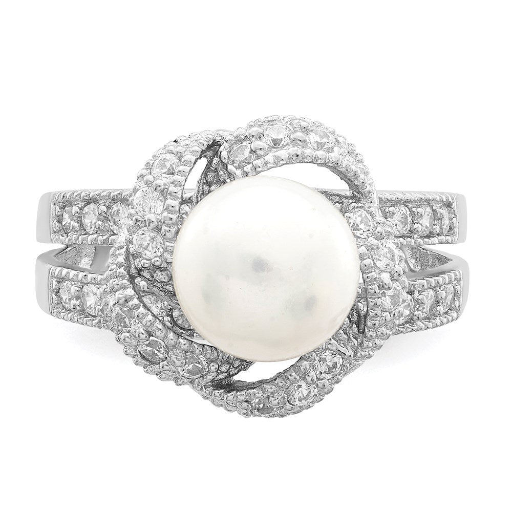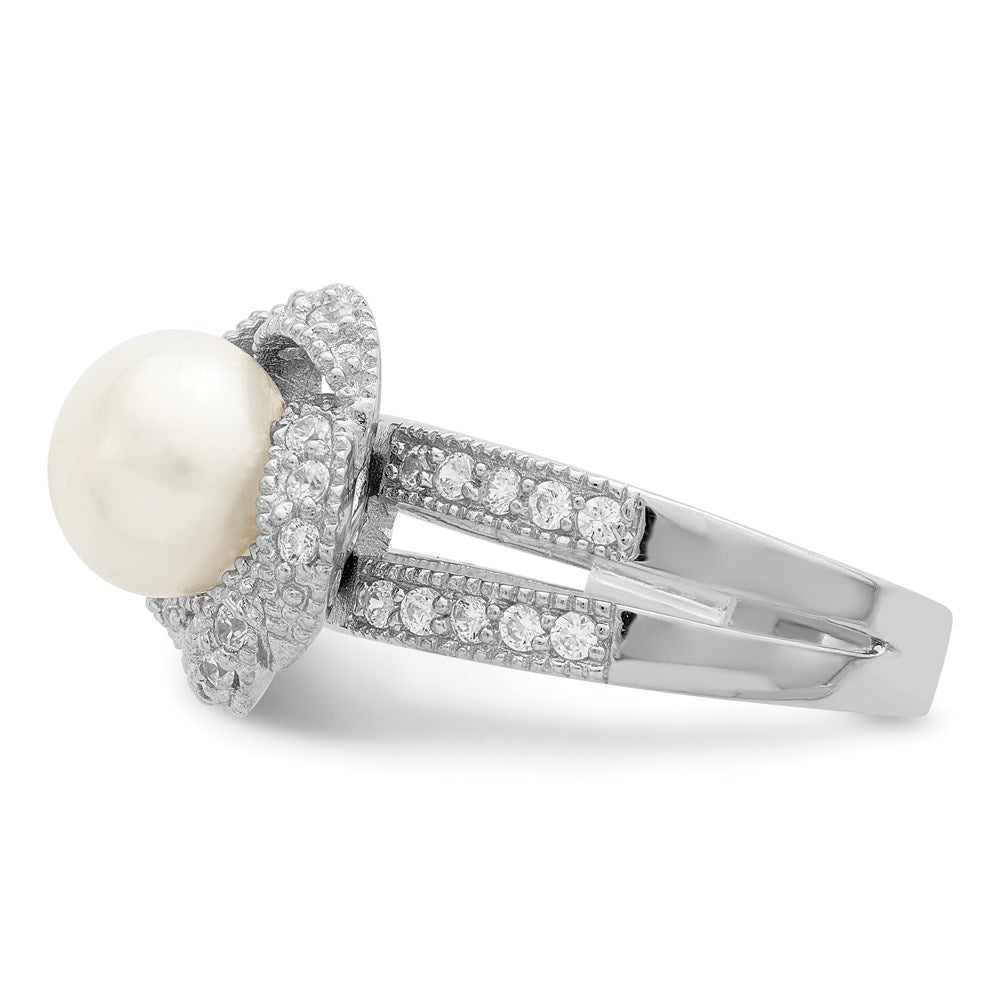 Sterling Silver Rhodium-Plated Simulated Pearl And Cz Ring